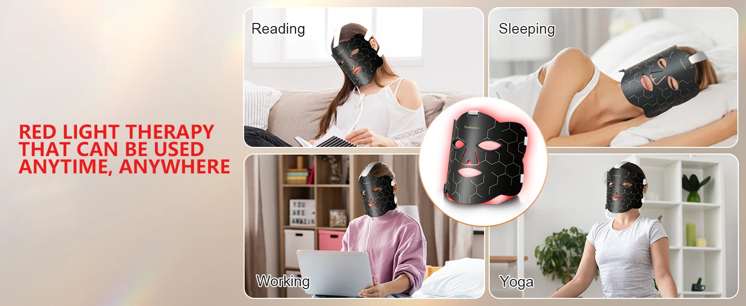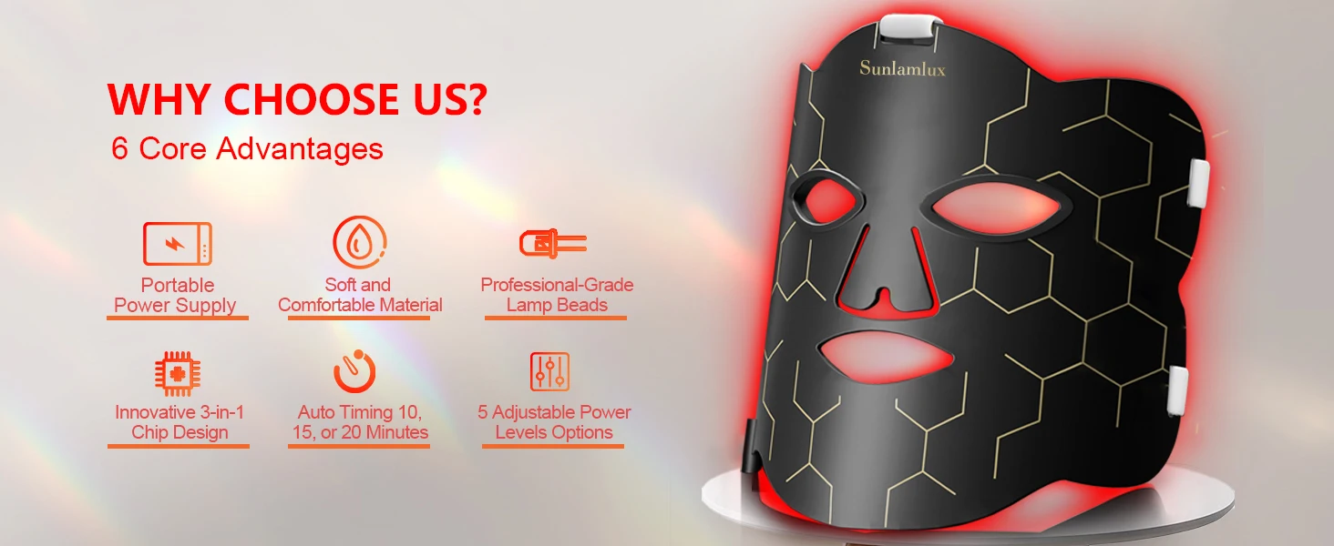 Advanced LED Facial Mask with Neck Care - 7 Color Photon Therapy for Anti-Aging & Acne, Wireless & Rechargeable